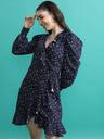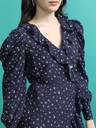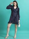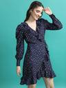 Tokyo Talkies Women Ruffled Dark Blue, White Above Knee/Mid Thigh Length Dress