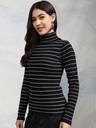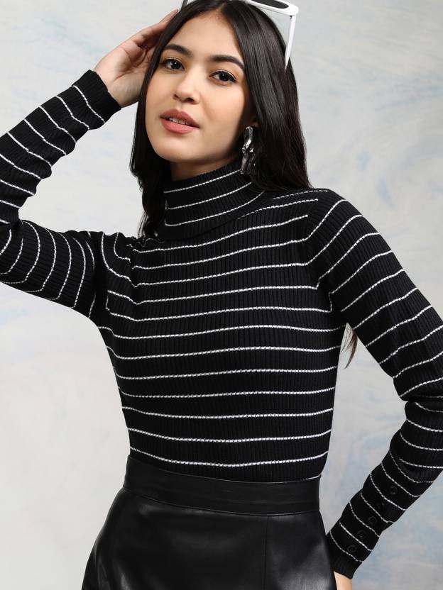 Tokyo Talkies Woven Turtle Neck Casual Women Black Sweater