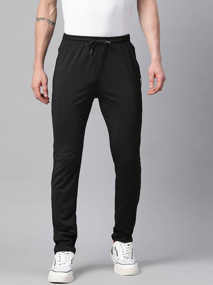 Solid track pants, has an elasticated waistband with drawstring closure and 2 pockets