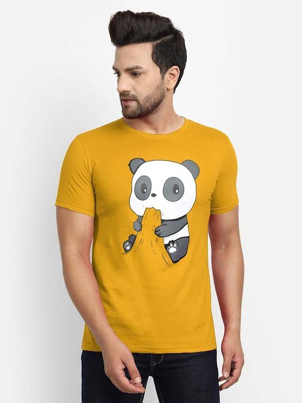Men Printed Round Neck Cotton Blend Yellow T-Shirt