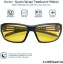 Tom Martin's Hector - Sports Wrap- Matte Black (Men - Translucent Yellow) Eyeglasses are a premium sports eyewear collection and build for sports, hiking, mountain climbing, driving, Night-Driving, cycling, & other outdoor activities. It's a perfect wrap around frame, with stylish temples which brings out your best look any day. Tom Martin eyewear can block 100% of both UV.A & UV.B radiations. UV400 rated sunglasses is essential in protecting your eyes against long term UV damage and keeping your eyes healthy when you go out.