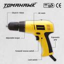 TOMAHAWK is a well-established brand who made a mission of delivering professional equipment and accessories meant to enhance the quality of life and make your everyday tasks more enjoyable and easier. That is why we rely on innovative technologies and premium materials to develop performant equipment that will never disappoint in terms of efficiency, durability, and functionality. Not completely satisfied with your order? Don’t worry, we are always at your service to address any issues or concerns. Tomahawk Electric Screwdriver Drill Machine 16+1 Torque Adjustment Function ,Dia 10mm, 800W, 750 RPM corded drill driver is a multipurpose Powerful electric screwdriver drill machine 10mm, torque adjustment option for proper screw tightening and drilling. The product is highly utilitarian and is a must-have in every household. The major advantage of this drill screwdriver is that it helps you perform your repair work at home all by yourself. It is perfectly designed to handle everything from light installation work to tough demanding tasks. Some of the amazing features of this product: Power: 800W , No load speed: 800rpm , Max drill diameter: 10mm Material Type - ABS Plastic 10mm Drill cum Screwdriver a variable speed Torque adjustment option for proper screw tightening and drilling It helps to perform repair work at home all by own Hand. Used in multiple task. Machine can also be used for small drilling operations in soft materials. This is special kind of screwdriver drill, unlike other drill machines this machine has got torque adjustment for proper tightening of the screws so that screw threads will not slip and damage MINIMUM SOUND AND VIBRATION : The screwdriver and electric drill features unique torque installed technology that helps in minimizing sound and vibration for a seamless experience. Featuring a powerful 300W motor, this 1.8mtr corded drill provides ample power for a range of drilling and screwdriving tasks. VERSATILE USAGE : This drill comes with 3 free drill bits, making it ready for immediate use. With a maximum drilling capacity of 15mm in wood and 10mm in steel, it is suitable for a variety of tasks around the home. The adjustable torque feature and insulated shockproof build ensure safety and precision during operation. Whether you're assembling furniture, installing shelves, or working on DIY projects, this electric screwdriver drill is a versatile and reliable choice.