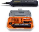 The Tomahawk T-SD-36pc 36-Piece Multipurpose Mini Handheld Screwdriver Set is a versatile and essential tool for home DIY enthusiasts, technicians, and hobbyists. Whether you're assembling PC components, working on RC vehicles, or repairing electronic gadgets like laptops, phones, and computers, this set has you covered. The electric screwdriver boasts a compact and reversible design, weighing just 0.15kg, making it easy to handle and maneuver in tight spaces. With a max torque of 105 Nm (electric) and 10 Nm (manual), it effortlessly handles screws up to 5mm in diameter at a rotational speed of 220 rpm, ensuring efficient and precise screwdriving. Powered by a long-lasting 3.6V 850mAh lithium-ion battery, this screwdriver offers quick charging in just 60 minutes and an operating time of 40 minutes, allowing you to work without interruptions. The ergonomic grip handle provides comfort during extended use, while the LED indicator light improves visibility in dark areas, ensuring accurate screw-driving. The set includes a carrying case, a micro USB cable for charging, and a 36-piece screwdriver bit set, providing you with all the tools you need for various screw-driving tasks. Upgrade your toolkit with the Tomahawk T-SD-36PC and tackle DIY projects with ease.