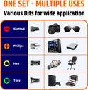 • MULTIPURPOSE MINI HANDHELD SET: The Tomahawk T-SD-36pc is a comprehensive 36-piece screwdriver set designed for a multitude of tasks. From assembling PCs and RC vehicles to repairing laptops, phones, and other electronic devices, this set is a versatile addition to your toolkit., COMPACT AND REVERSIBLE DESIGN: The 3.6V electric screwdriver is not only compact and lightweight at just 0.15kg, but it's also reversible. This feature allows for effortless handling and versatile use in both forward and reverse motion, enhancing your efficiency during projects., POWERFUL PERFORMANCE: With a maximum torque of 105Nm (electric) and 10Nm (manual), this screwdriver can tackle screws with a maximum diameter of 5mm. Its rotational speed of 220rpm ensures precise and efficient screwdriving, even in tight spaces.