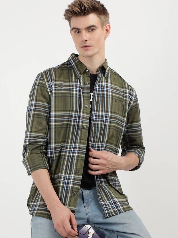 TOMMY HILFIGER Men Checkered Casual Green Shirt