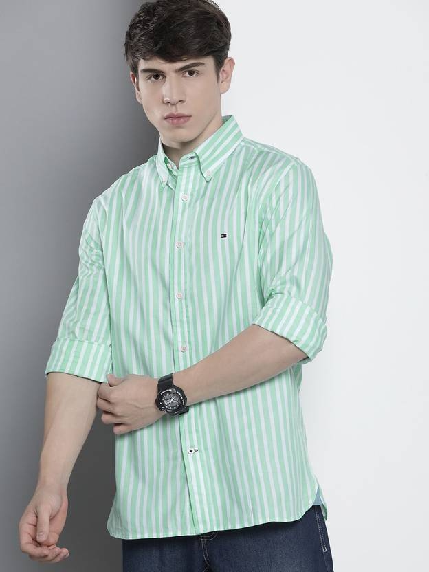 TOMMY HILFIGER Men Striped Casual Green Shirt
