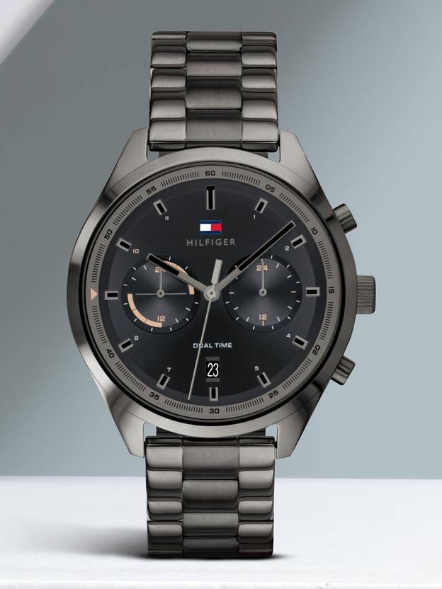 TOMMY HILFIGER NCTH1791727 Tommy Hilfiger Multifunction With Date Black Dial Grey SS Strap Analog Watch - For Men