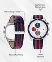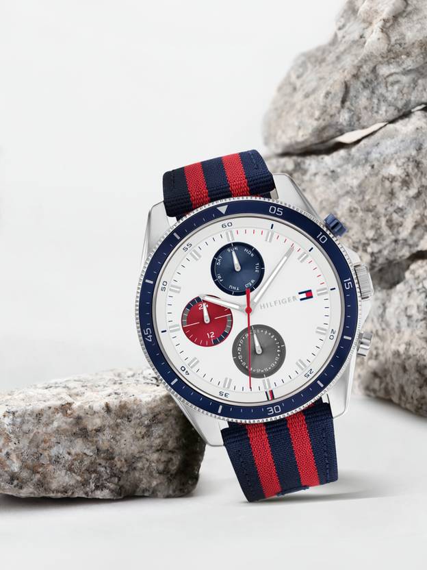 A true Tommy Hilfiger timepiece, the white dial with multicolor sub eyes ensures you’ll never be late again. Featuring a blue and red striped nylon strap, casual has never looked so good. Multi-function, 44MM