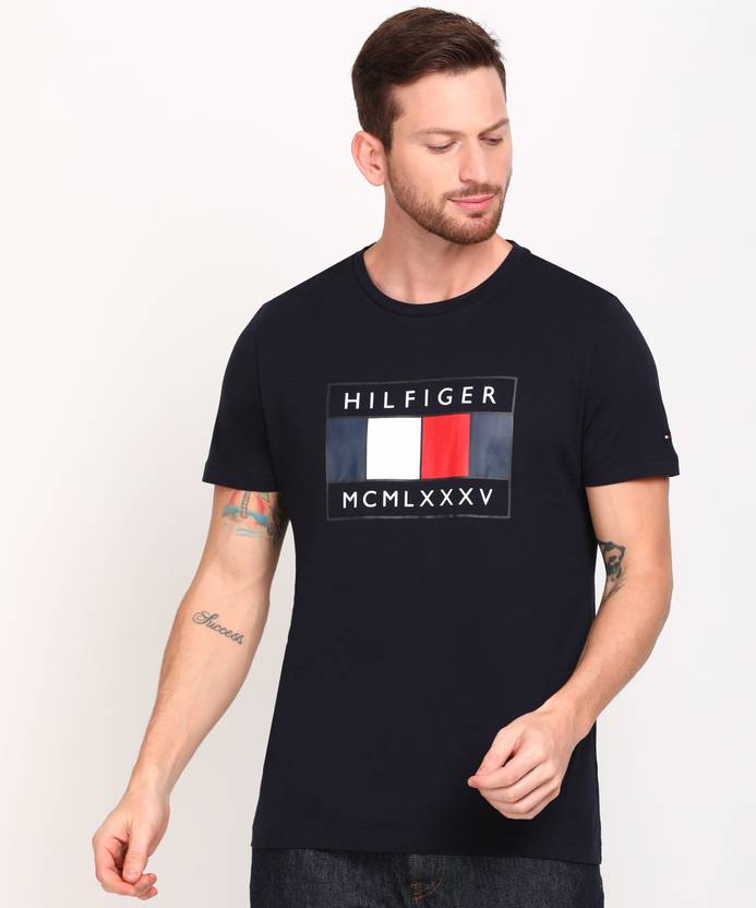 Tommy Hilfiger Men Printed Navy Blue T-Shirt. Crafted With Pure Cotton. Material Composition Is 100% Organic Cotton.