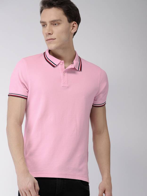 TOMMY HILFIGER Self Design Men Polo Neck Pink T-Shirt