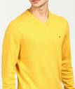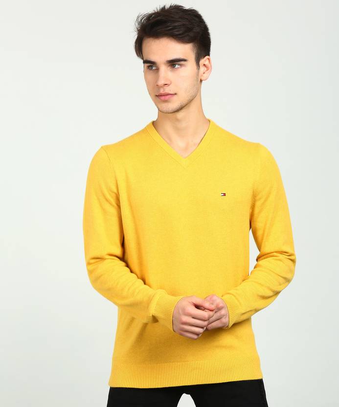 TOMMY HILFIGER Self Design V Neck Casual Men Yellow Sweater