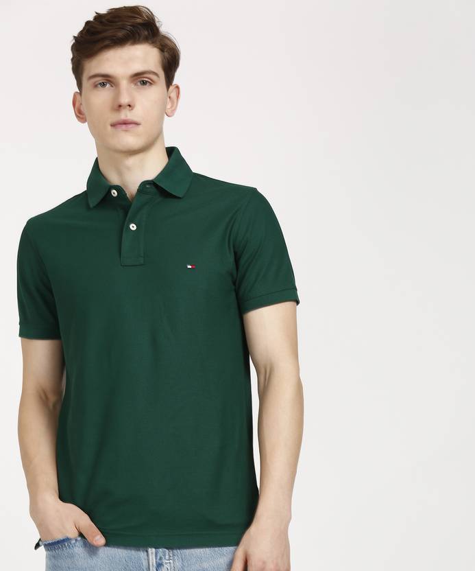 TOMMY HILFIGER Solid Men Polo Neck Green T-Shirt