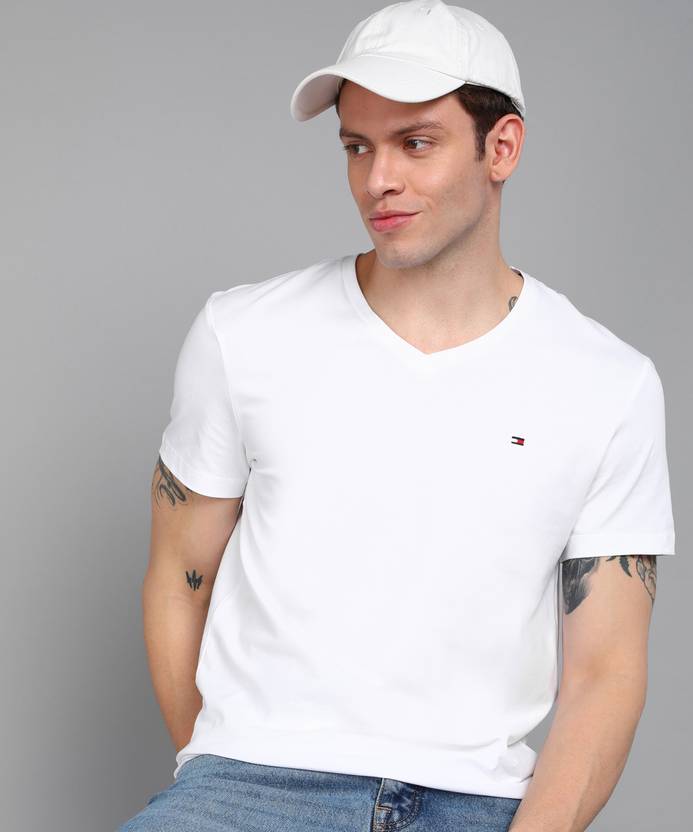 TOMMY HILFIGER Solid Men V Neck White T-Shirt