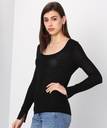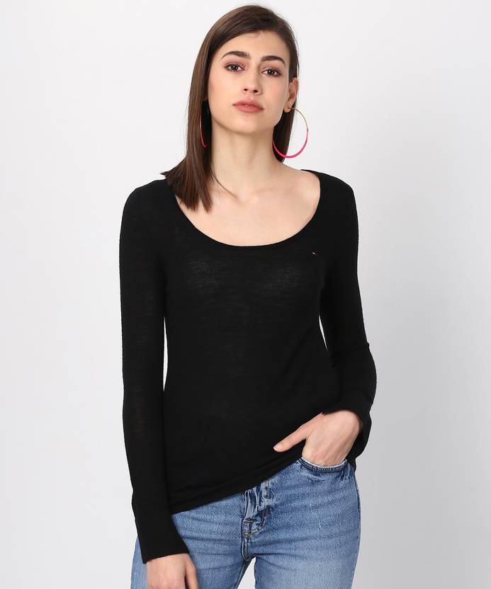 TOMMY HILFIGER Solid Scoop Neck Casual Women Black Sweater