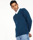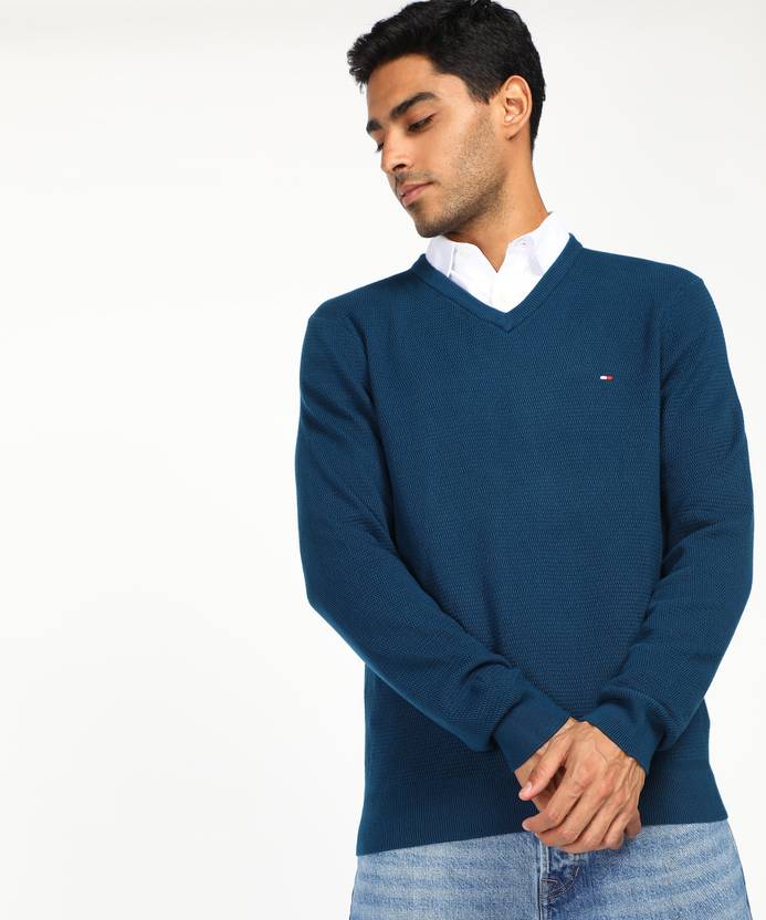 TOMMY HILFIGER Solid V Neck Casual Men Blue Sweater