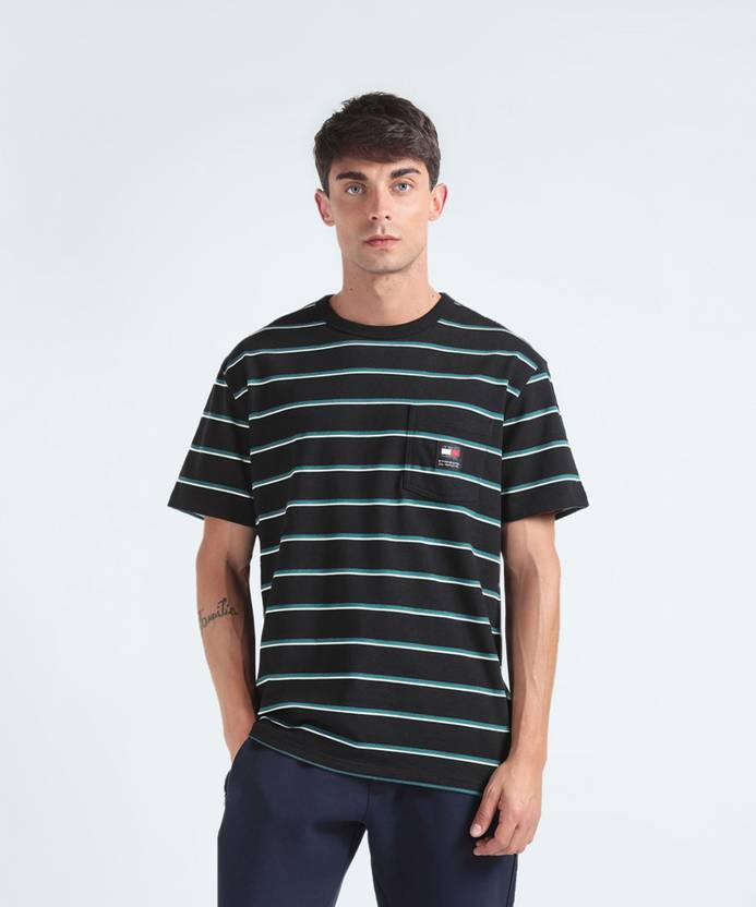 TOMMY HILFIGER Striped Men Round Neck Black T-Shirt