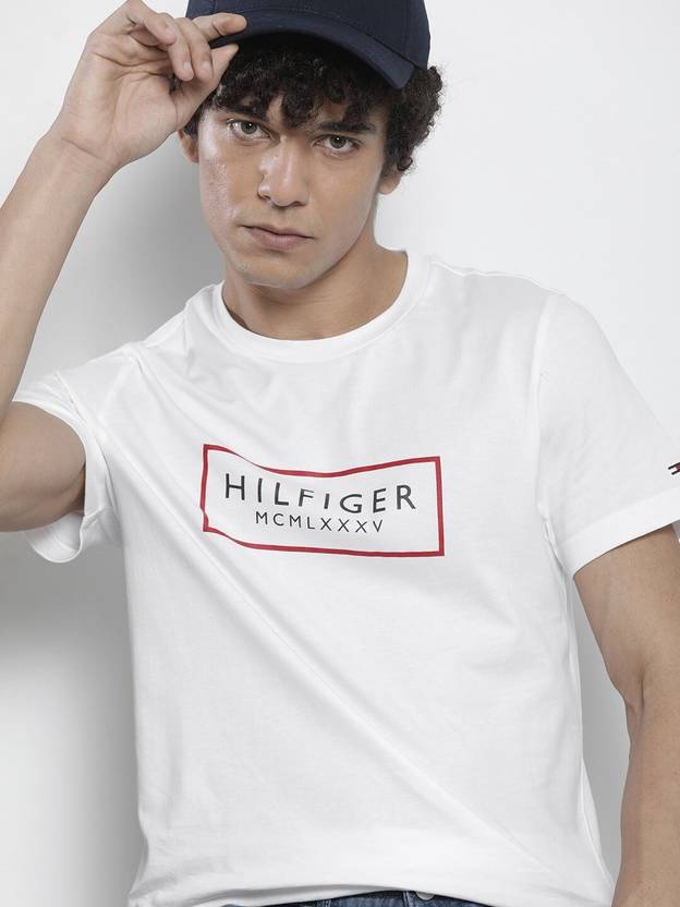 White Tshirt for men Brand logo printed Regular length Round neck Short, regular sleeves Knitted pure cotton fabric .