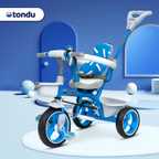 TONDU Plug N Play Kids/Baby Tricycle with Parental Control and Safety Guardrail 12 T (inch) Road Cycle (Single Speed, Blue, Rigid)