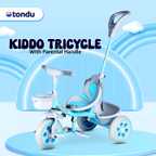 TONDU Plug N Play Kids/Baby Tricycle with Seat Belt and Parental Control 12 T (inch) Road Cycle (Single Speed, Blue, Rigid)
