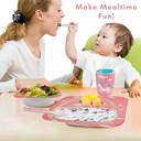Thanks to its versatility, this set can support various feeding stages from babies to toddlers. So, whether used for self-feeding practice or parent-led meals, this set makes dining a playful and fun experience. Courtesy of a bright and engaging design, this set can transform any table into a cheerful dining area. From mashed vegetables to finger foods, this set encourages little ones to explore eating with enthusiasm while being durable and convenient enough to use at home or take on outings.