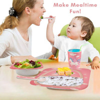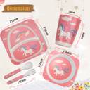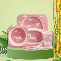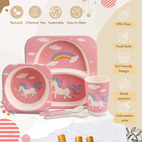 TONY STARK Bamboo Fiber Eco Friendly Baby Self Feeding Dinner Utensils Set - Kids Toddlers and Babies, Set of 5 (Plate, Bowl, Cup, Spoon, Fork)Bamboo Fiber (Unicorn)