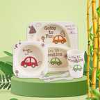 Sporting eco-friendly bamboo fibre construction, this set promotes environmental responsibility while being gentle on your child's health. The forming process includes using natural bamboo that’s broken down into bamboo powder, formed into beautiful tableware, and crafted into utensils that safely degrade over time. Boasting sustainable production, the bamboo fibre ensures this set is sturdy yet lightweight, making it safe and easy for little hands to manage during meals.