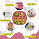 Featuring a sturdy construction, this set is made of high-quality silicone, which is BPA-free and non-toxic. Thanks to its microwave-safe, dishwasher-safe, and refrigerator-safe properties, cleaning and reheating food is easy and convenient. And, the plate also includes a suction cup-enabled base with a slip-resistant design, ensuring it stays firmly in place during feeding, minimising the risk of spills. Moreover, the heat-resistant nature ensures this plate remains safe to handle, even when serving hot food.