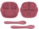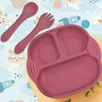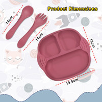 TONY STARK Combo of Silicone Suction Plate, Silicone Spoon & Fork For Baby Feeding - Pack of 3 Baby Dinner Set, Silicone (Wine Red)