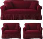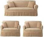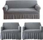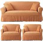 These sofa covers boast a tailored aesthetic, thanks to their frill design and elastic stretchable construction. The frill detailing adds a touch of refinement and sophistication, elevating the overall appearance of your furniture. The elastic material ensures a snug and secure fit, accommodating both one-seater and three-seater sofas with ease.