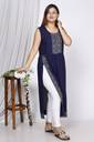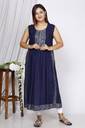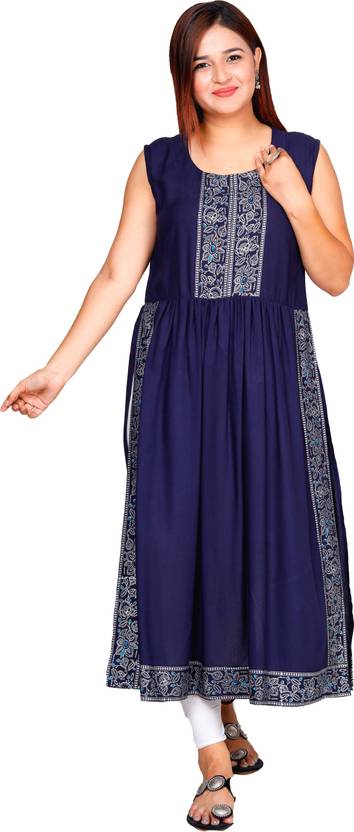 Women Printed Viscose Rayon Ethnic Dress (Dark Blue)