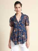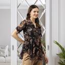 Toochki Women's Black Georgette Paisley Flared Western Top