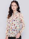 Toochki Women's Off-White Georgette Polka Dot Straight Western Top