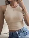 Crafted from ultra-soft, stretchable Lycra for a perfect fit. Featuring a sleeveless, crop-length design with a classic round neckline, this body-hugging top enhances your silhouette