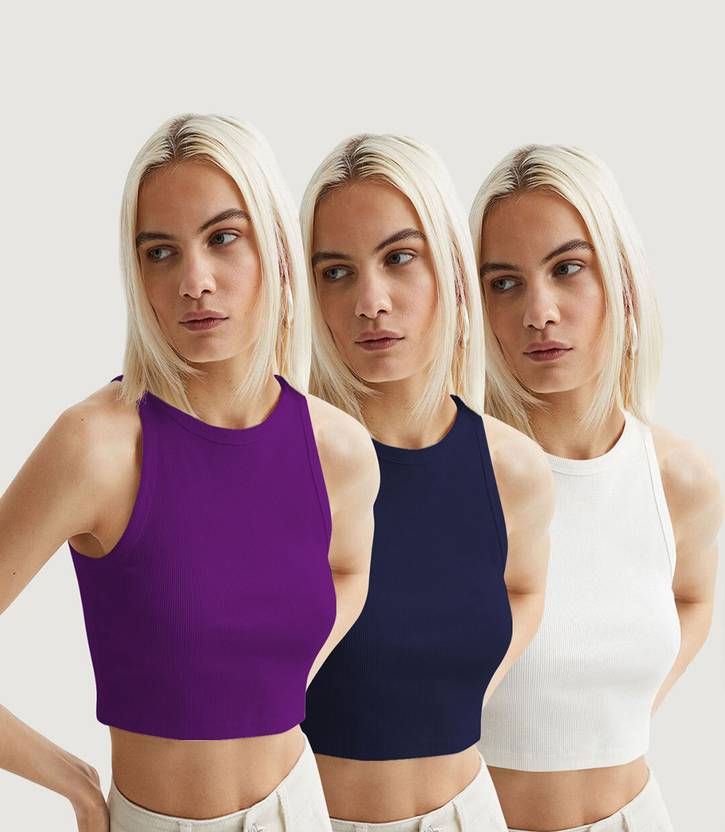 Elevate Your Everyday Style With The Toochki Deep Purple & Blue & White Solid Crop Top, Designed For Modern And Confident Women. Made From Premium Lycra Fabric, This Crop Top Offers A Soft, Stretchable, And Breathable Fit. With A Sleek Sleeveless Design And Classic Boat Neckline, It Enhances Your Look And Ensures All-Day Comfort. Whether You'Re Heading To The Gym, Running Errands, Or Meeting Friends, This Crop Top Pairs Easily With High-Waisted Jeans, A Skirt, Or Joggers For A Stylish And Trendy Look.