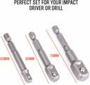 3Pcs Socket Adapter Impact Hex Shank Drill Bits Power Extension Bar 1/4 3/8 1/2