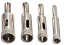 This diamond coated core drill bit removes a complete circle from glass, tiles, marble, granite, ceramic, concrete or other.