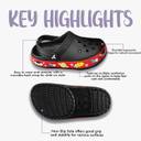 Crafted using lightweight EVA, they provide flexibility without compromising on durability. The breathable construction keeps feet cool and fresh, while the sleek black finish ensures they pair well with almost anything. A subtle foxing detail along the edge adds a modern, sporty touch — making these clogs just as stylish as they are practical.