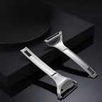 Boasting a Y-shaped design, this vegetable and fruit peeler stands out with its brushed finish, combining aesthetic appeal with functionality. Its serrated blade type ensures efficient peeling, making it an indispensable tool in your kitchen. Moreover, its ergonomic thin handle is designed for easy gripping, allowing you to hold it firmly without strain. This peeler is ideally suited for various tough and soft-skinned vegetables and fruits, from butternut squash and carrots to tomatoes and kiwi fruits.
