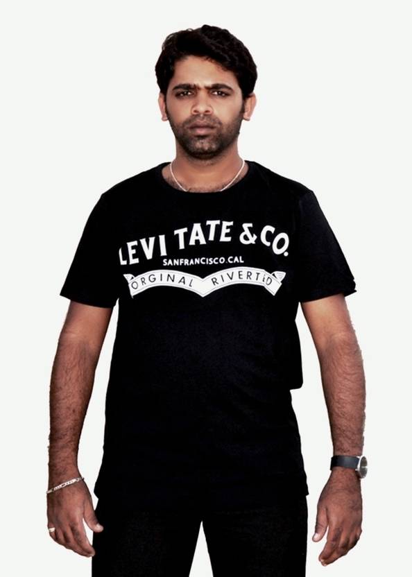 Top Yogi Men Printed Round Neck Cotton Blend Black T-Shirt