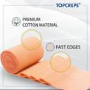 TopCrepe Cotton Crepe Bandage Offers More 1. Strength 2. Softness 3. Stretchability 4. Regainability Intended use: Sprain, strain, dislocation, painful joints, post-operative conditions, sports mishaps, support bandaging for other general surgical & orthopedic use Made of cotton blended with rayon Special z & S knitting gives 100% extensibility Highly porous for better air circulation Ideal for musculoskeletal injuries Meets British Pharmacopoeia Specification