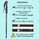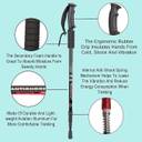 Prepare for any expedition with these high-performance black trekking poles, specifically designed for strength, comfort, and all-season versatility. Each pole is expertly crafted from premium aviation aluminum, making them extraordinarily lightweight at just 10.3 ounces, which significantly reduces arm fatigue during extensive use. Their retractable mechanism offers an impressive adjustment range from a compact 25 inches to an extended 52 inches, making them perfectly suited for a wide spectrum of users, from children on their first hike to seasoned adult mountaineers. A crucial functional element is the anti-shock technology, which masterfully dampens impacts, thereby alleviating considerable strain on your hands and wrists. This feature is particularly invaluable for individuals prone to joint discomfort, recovering from sports injuries, or those with hip, knee, or ankle instability, offering vital support and stability. The ergonomic aluminum handle grip provides a superior non-slip, comfortable, and naturally warm hold, enhancing control and reducing hand fatigue. A secondary foam handle is strategically integrated to absorb moisture, ensuring a firm grip even with sweaty hands. The straps are both durable and easily adjustable, guaranteeing a snug and comfortable fit. This comprehensive package includes an 8-piece replacement tip kit—featuring two rubber tips, two boot tips, two snow baskets, and two mud baskets—along with a practical carry bag, equipping these poles to conquer any terrain, be it concrete, rocky paths, muddy trails, or snowy landscapes.