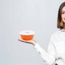 Topmtop Stainless Steel Serving Bowl Microwave Safe Bowl Set With Lid Dinner Serving Mixing Bowls Each Bowl 450ml, (Pack of 2, Orange)