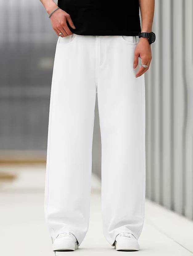 Fit: Baggy jeans typically have a loose fit throughout the legs and hips, providing ample room for movement and a relaxed silhouette, Waist: Look for jeans with a comfortable waistband that sits at your natural waist or slightly below, depending on your preference, Leg Style: Baggy jeans may feature straight legs or slightly tapered legs, but they are generally wider than slim or skinny jeans, Styling: Pair baggy jeans with casual t-shirts, hoodies, or oversized shirts for a relaxed streetwear vibe. Sneakers, boots, or chunky shoes complement the baggy style well, Fabric: Opt for durable denim fabric with a medium to heavyweight for a classic denim look and feel. Some styles may also incorporate stretch for added comfort.