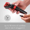 With a sleek battery indicator feature, this trimmer keeps you aware of the battery usage while operating it. This battery indicator also indicates whether the trimmer is being used without its cord or is plugged-in for charging.