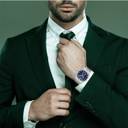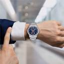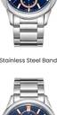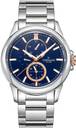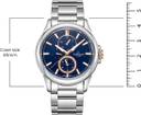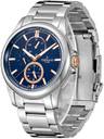 Round Stainless Steel Silver case with Multi-Function display, Blue dial 45mm case diameter, Japan Quartz movement, 10 ATM water-resistant Silver Stainless Steel bracelet with Hidden Clasp