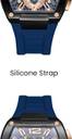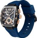 Rectangle High Quality Stainless Steel, Brushed Case Black case with Multi Function display, Part Skeletonized, Multi Layered Rose Gold & Blue Dial