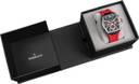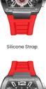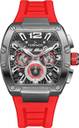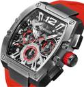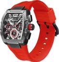 Rectangle High Quality Stainless Steel, Brushed Case Gun Metal case with Multi Function display, Part Skeletonized, Multi Layered Black & Racing Red Dial