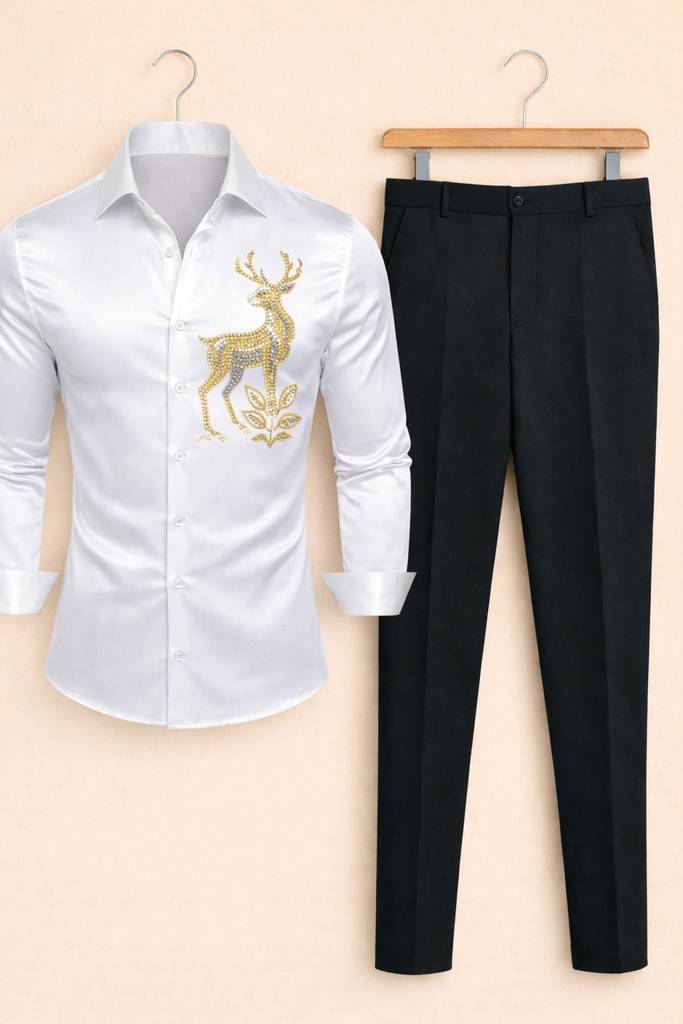 TyrellFashion Men Cotton Blend Shirt Pant Set