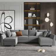 Torque Ethan 6 Seater U-Shape Fabric Sofa for Living Room, Bedroom, Office Furniture Fabric 6 Seater Sofa (Finish Color - Dark Grey, Pre-assembled)