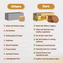 Key Features | - NATURE'S POWERHOUSE: Almonds, cashews, pumpkin seeds, and millets deliver a punch of protein, fiber, and healthy fats for sustained energy and happy tummies., NATURALLY SWEET DELIGHT: Ditch the refined sugar! Organic jaggery offers a delicious and guilt-free sweetness that nourishes your body and delights your taste buds., SNACKING MADE EASY: Enjoy these cookies straight from the pack or dunk them in milk for a satisfying treat. Perfect for busy days or lunchbox surprises!, CLEAN & WHOLESOME INGREDIENTS: Rest assured, you're giving your family the best. These cookies are crafted with only natural ingredients – nuts, seeds, millets, jaggery, and butter – for a worry-free and delicious snack. No refined sugars, No Maida, No Baking powder, No Baking soda, No Maltodextrin and No eggs.